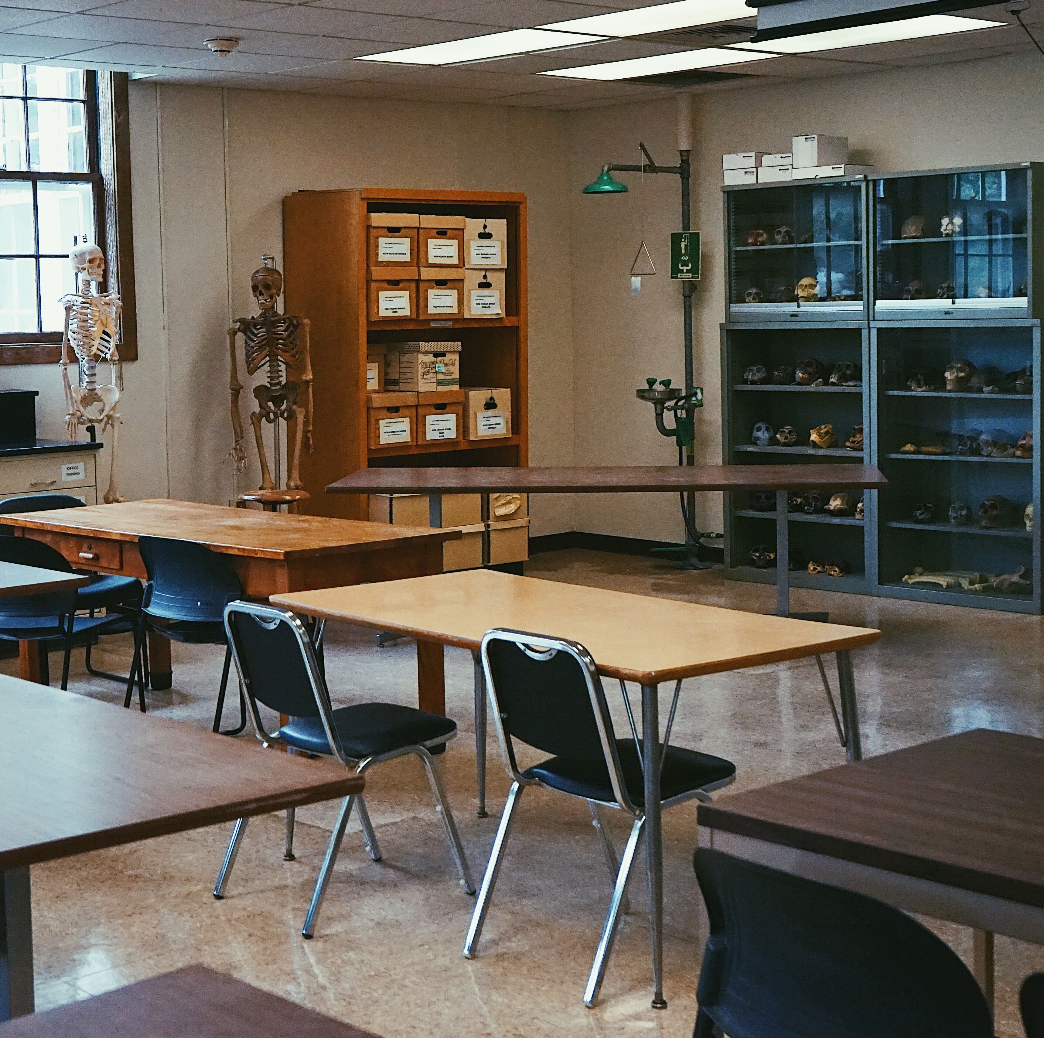 And a mere stone’s throw away is the new forensic classroom! Able to house up to 30 students at once, the classroom provides space for teaching and hands-on learning for both our graduate and undergraduate students. While the short walk to the new classroom has already proved convenient for our lab members, we are sure undergraduate students are extremely excited as well, as they no longer have to hike all the way to the south of campus to learn forensic anthropology and osteology!
